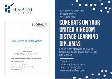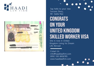 I am very happy 😊 for Haadi firm law I come from UK 🇬🇧 manchester. Mr. Sardar Baki very helpful 👌 and very intelligent 👏. thanks 😊 Haadi law Firm he is getting my wife visa. and children. thanks
